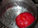 | 4 | 湯通ししたトマトはすぐに冷水に移し、あら熱が取れたら、取り出します。 | ![]() |