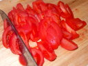 | 6 | 次の工程でミキサーにかけた時に、ミキシングしやすいように、トマトをざく切りにします。 | ![]() |